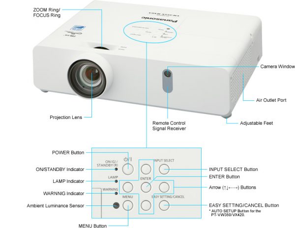 Với độ Zoom vậy bạn có thể đặt Máy chiếu Panasonic PT-VX425N cho màn hình 100 inchs, bạn chỉ cần đặt máy cách màn hình một khoảng cách từ 2.5 m – 4.1 m. Điều này giúp bạn hạn chế được mọi không gian chiếu.