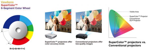 Cũng giống như những dòng máy chiếu Viewsonic khác, Viewsonic PJD5353LS có công nghệ độc quyền SuperColor ™đặc trưng với bánh xe màu 6-phân đoạn nên khả năng điều khiển đèn năng động, cung cấp một phạm vi màu rộng và hình ảnh tuyệt đẹp.