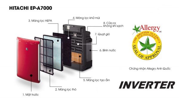 Chứng nhận Allegry Anh Quốc: là chứng chỉ ngăn chặn hiệu quả các tác nhân gây dị ứng mà máy lọc không khí và tạo ẩm Hitachi EP-A7000 đạt được
