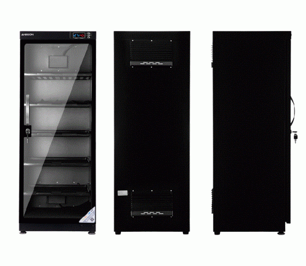 Toàn bộ tủ chống ẩm máy ảnh được sơn hai lớp bằng sơn tĩnh điện màu đen.