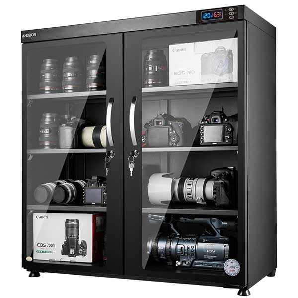 – Tủ chống ẩm được thiết kế gọn, 2 cánh cửa bằng thủy tinh.