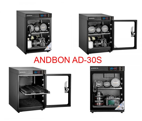 Tủ chống ẩm ANDBON AD-30S là một tủ kín, được chế tạo bằng tone, sơn tĩnh điện. Cánh cửa tủ có cấu tạo bằng kính và có thêm ổ khóa bảo vệ, các cạnh mép cánh cửa có gioăng cao su để tăng độ kín khi đóng tủ. Bên trong tủ có bộ phận hút ẩm, đèn báo trạng thái hoạt động, đồng hồ đo độ ẩm (ẩm kế), đồng hồ đo nhiệt độ. Mặt trước của tủ có đèn led hiển thị nhiệt độ và độ ẩm, các nút điều chỉnh thông số, rất tiện dụng. Ngoài ra tủ chống ẩm thường dùng các khay (dạng kéo) để chứa đồ. Do sử dụng điện để vận hành nên tủ chống ẩm thường để cố định một vị trí.